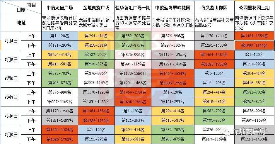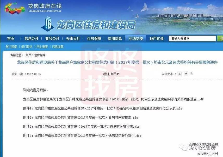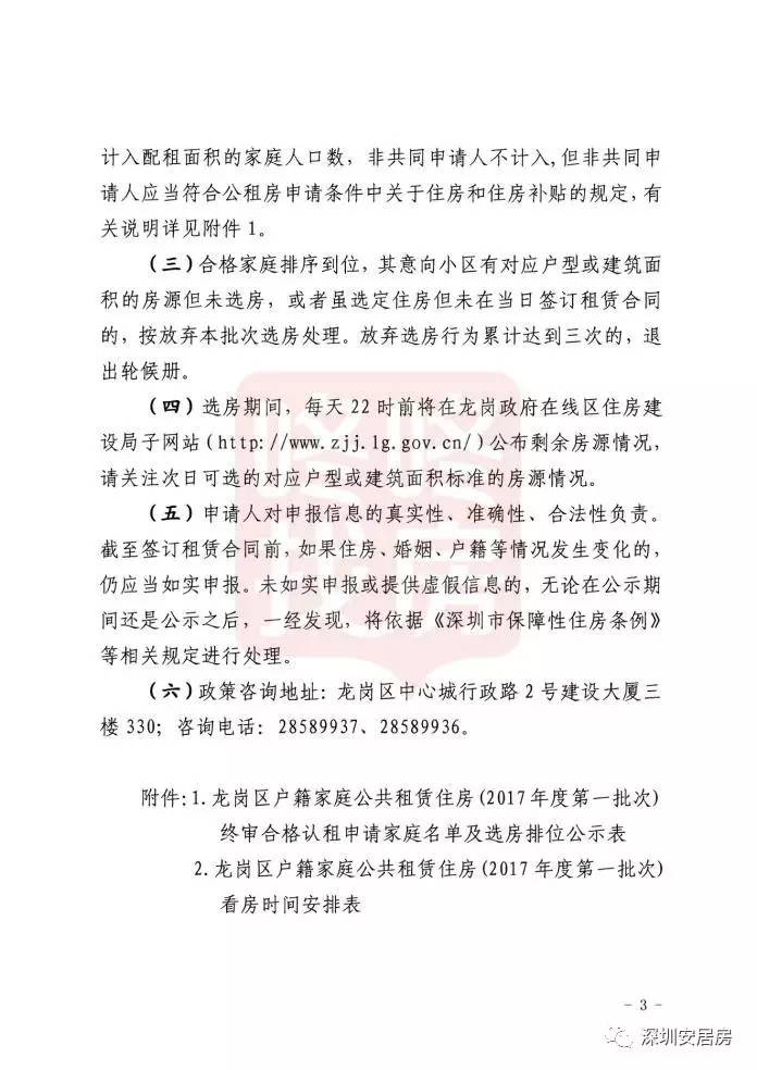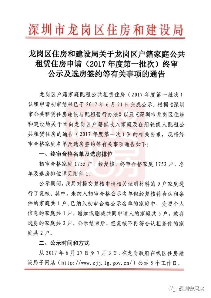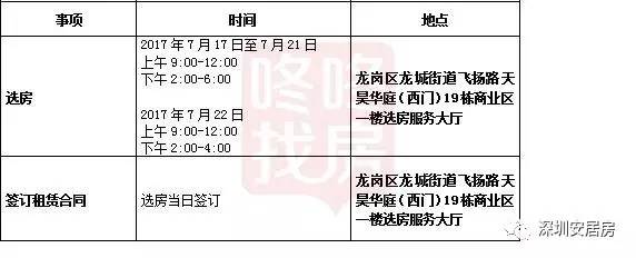 接下来是:龙岗区户籍家庭公共租赁住房(2017年度第一批次)选房时间安排表,请注意