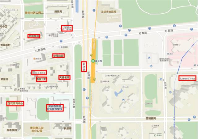 B口:华强职业技术学校黄埔学校中学部莲花体育中心天健名苑香蜜三村