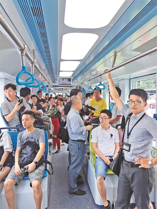 有轨电车内部。随着现代有轨电车的开通,将提升龙华区的城市品质,增进市民的获得感,并助推居民提升文明素养。而随着有轨电车示范线的开通,也将迎来一个更文明、更美丽、更发达的新龙华。