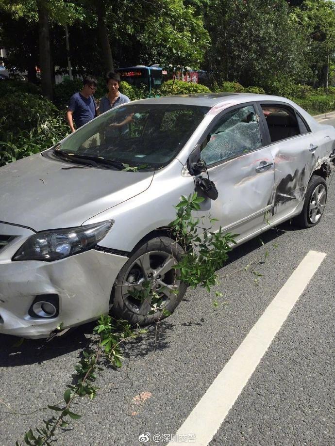 深圳小车冲进绿化带 交警通报事故现场 感叹触目惊心