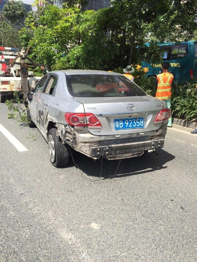 28日上午,深圳交警通报一起交通事故,并附文感叹:看看事故现场,有没有一种触目惊心的感觉?图为事故现场。
