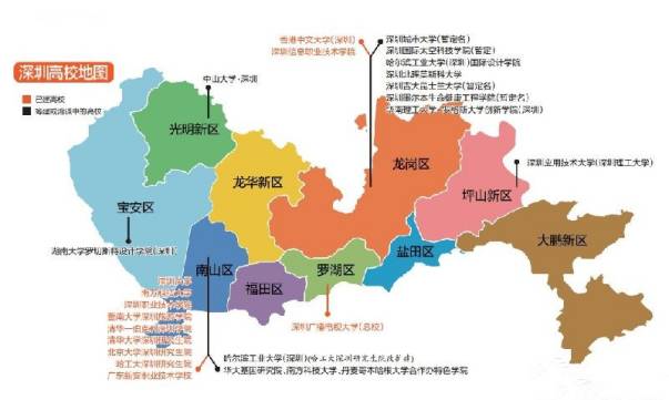而龙岗区则将变身国际大学城,至少有20所大学。另外宝安或将新增5所大学;坪山、大鹏也将新增多所知名高校。