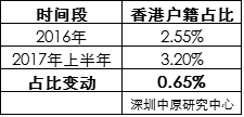 1、香港客在深购房占比上升,占比由2016年2.55%,上升到今年上半年3.2%。由于深圳目前调控政策比较严格,香港客难以大批量进驻。