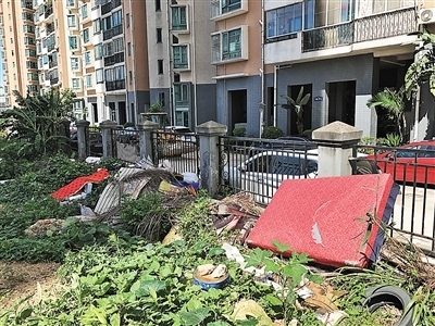 民治民兴苑与中航阳光新苑中间空地堆放大件垃圾。