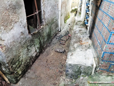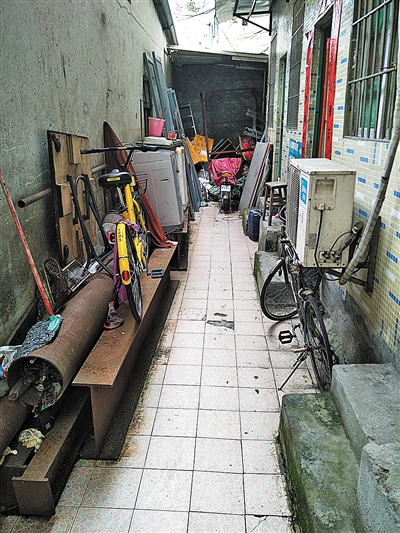 观湖新丰新村37号旁巷道堆放杂物。