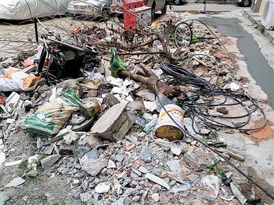 大浪元芬新村39号旁堆放大件垃圾。