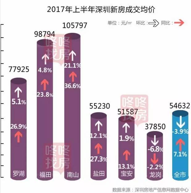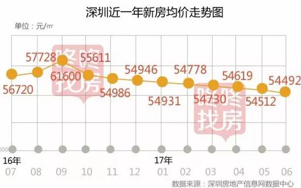 调控政策持续影响下,深圳房价已得到有效抑制,6月除罗湖外各区全线下跌。自去年10月至今,深圳房价已下跌7108元/平方米。