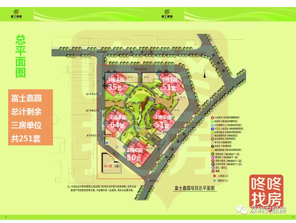 项目共5栋房源,剩余共251套。其中,1栋A座剩余35套,2栋B座剩余64套,2栋C座剩余50套,3栋D座剩余51套,3栋E座剩余51套。