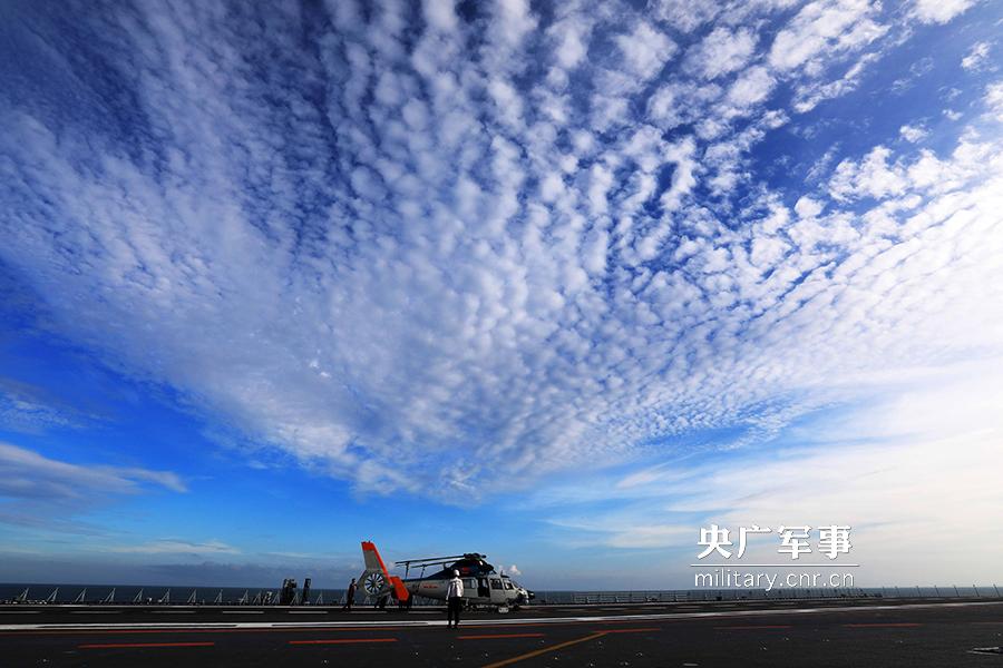 舰载直升机起飞。张凯摄