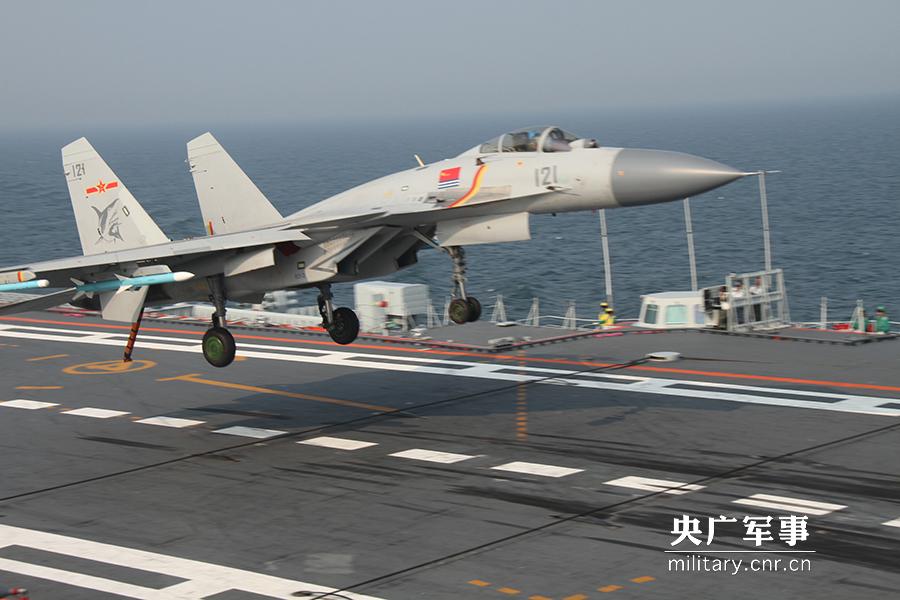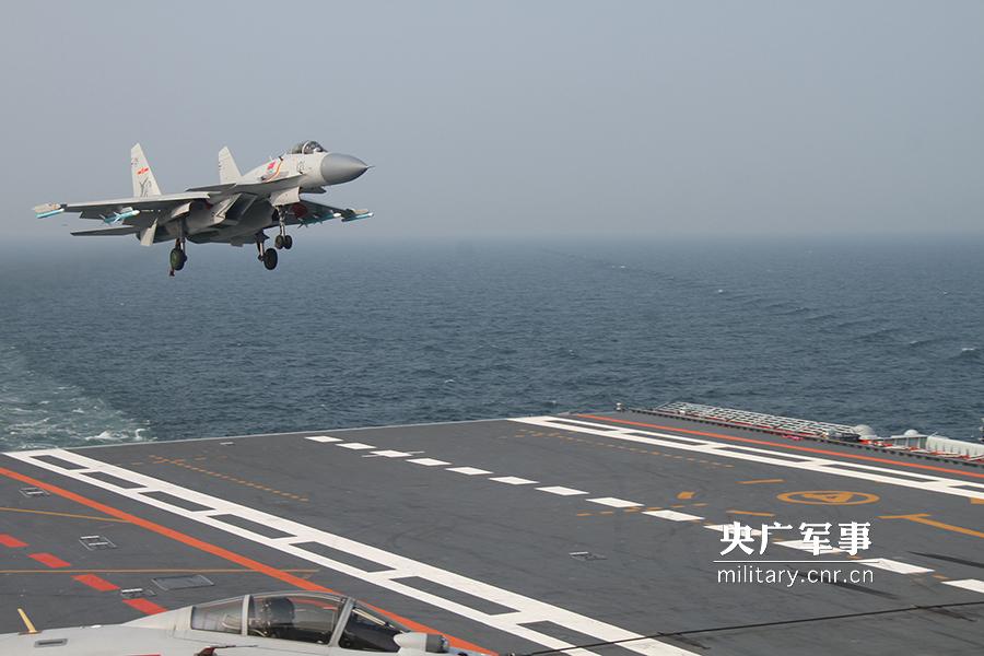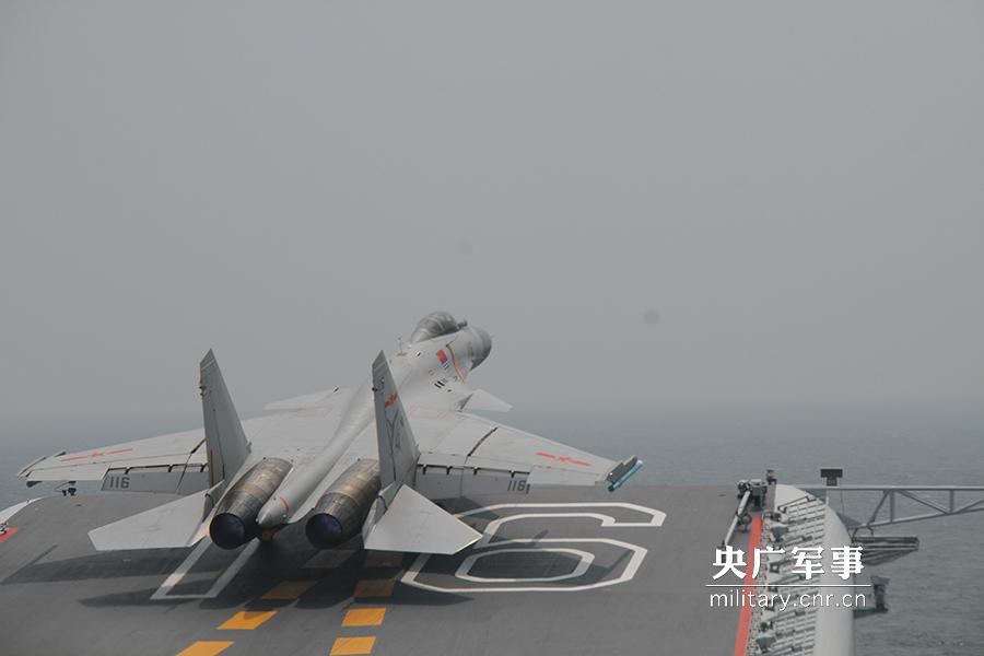 歼15舰载机准备着舰。娄思佳摄