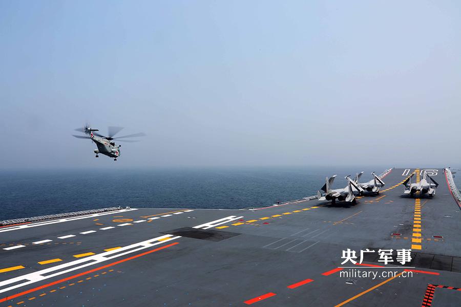 舰载直升机着舰。 李唐摄