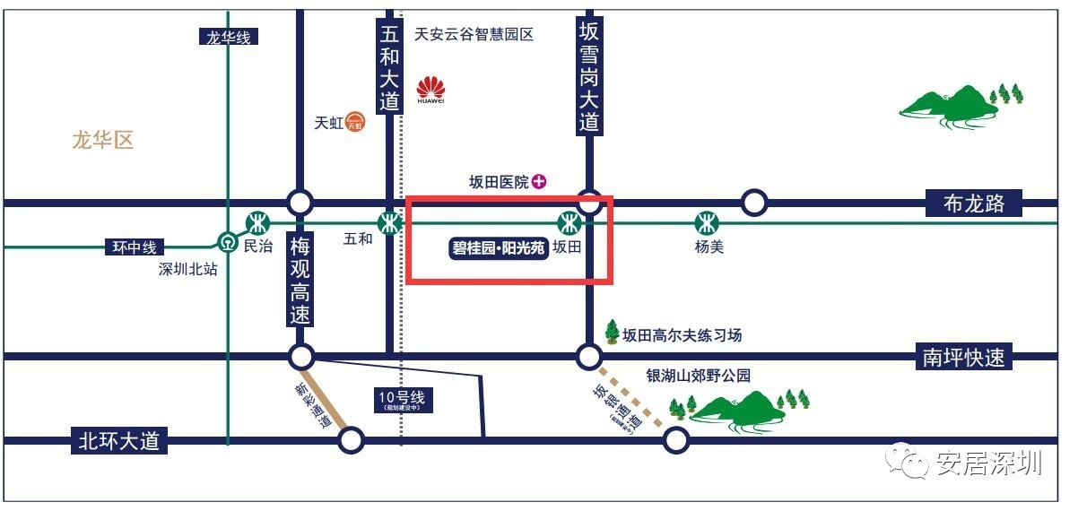 碧桂园阳光苑位于龙岗区坂田街道坂雪岗大道西面虎山路南面,该项目安居型商品房共240套,全部为两房户型,户型建筑面积约65.05㎡~68.93㎡。预计交付使用时间为2018年10月底。