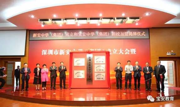 新安中学(集团)成立于2017年4月,共5个校区,分别是高中部、初中部、第一实验学校、第二实验学校和外国语学校。集团前身为新安中学,是广东省国家级示范性普通高中。集团瞄准“创建实验创新、特色发展的滨海名校”的办学目标,围绕“高、大、上、优、特”的发展定位,按照“条块并举,一体管理;五统五分,协同创新”的原则,推动各校区特色化错位发展。新安中学(集团)外国语学校为九年一贯制学校,位于宝安区桃花源科技创新园区,计划办学规模为72个教学班。