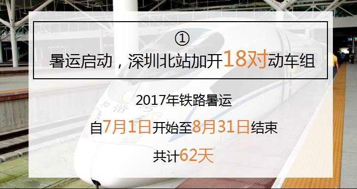 新闻提要 为应对暑运客流高峰,深圳北站将加开列车、开行周末线及高峰线共18对,重联运行动车组列车5对。