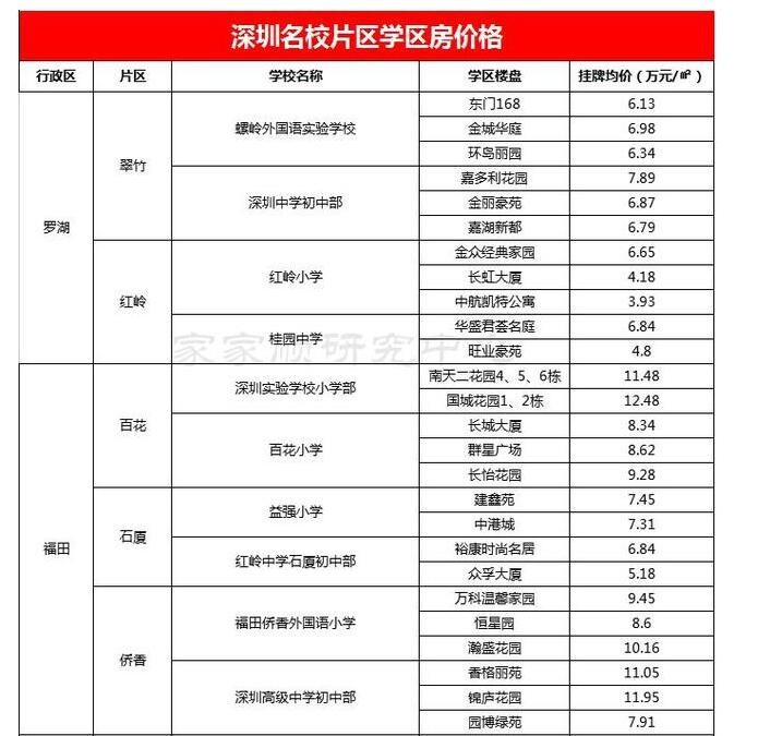 深圳重点中小学分布情况一览 学区房价全在这!