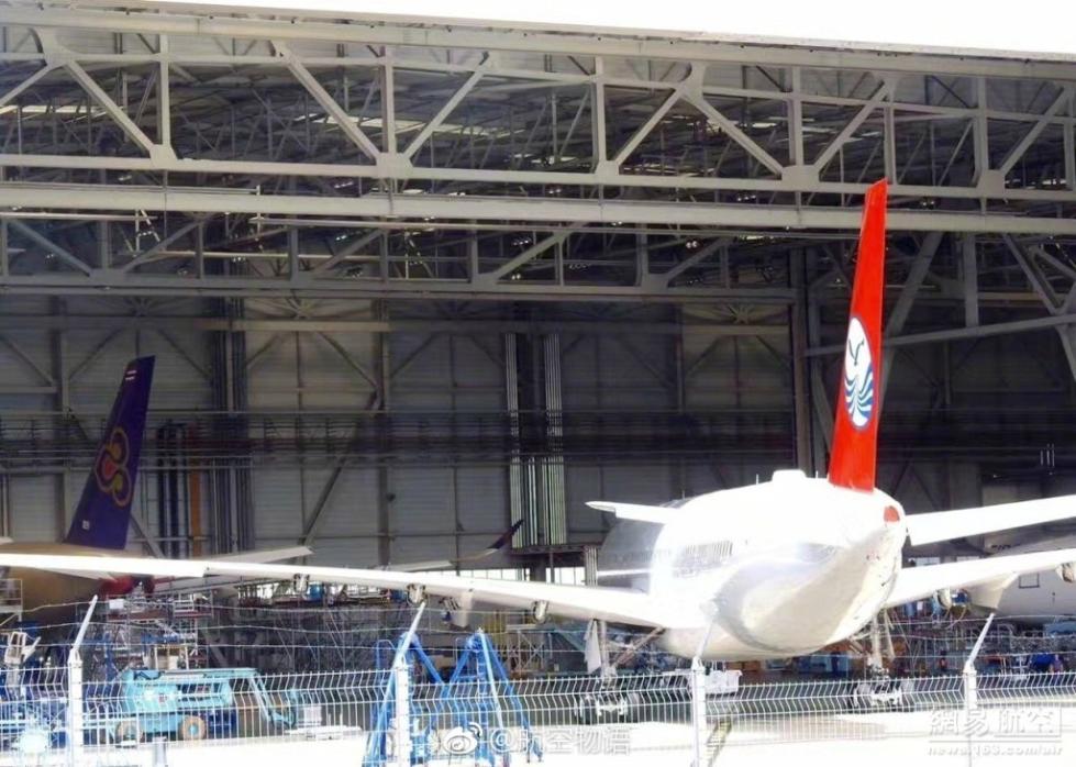 在进入机库前,川航飞机并没有涂上其红白相间的标准涂装,因此这架飞机一定会以彩绘亮相。