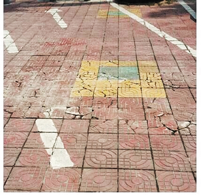 整改前 观湖体育中心路面破损。