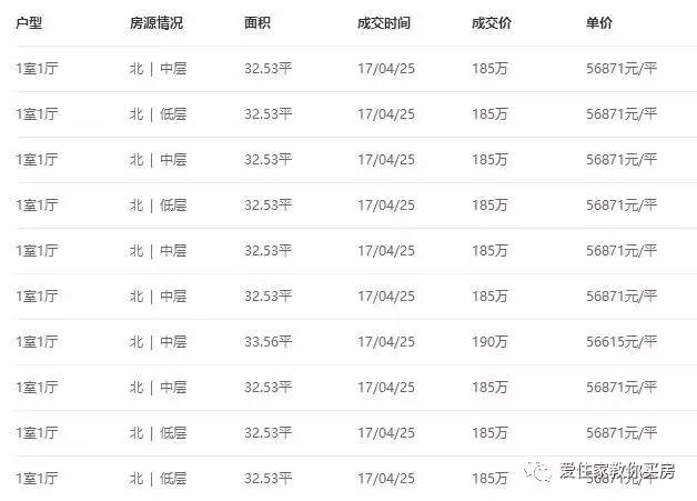 南水小区4月部分成交记录