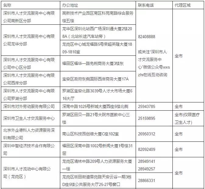 注:代理区域为XX区的仅代理工商注册地在该区的用人单位和在该区缴交社保的个人申办业务,如原工商注册所在区存在区划调整的,以调整后的区划为准(如原工商注册在宝安区观澜街道的企业,因观澜已调整为龙华区,应选择在龙华区办理相关业务)。