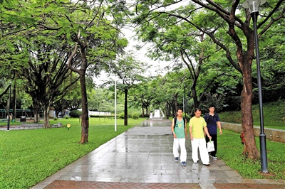 市民点评:带着儿子到观澜人民公园游玩的市民陈女士说,现在园内草木郁郁葱葱,生机盎然,路面、台阶、马路牙子、垃圾桶等每一处地方都显得干净整洁,让人满意。她建议,这个公园全天候免费开放,来往人流大,除了加强清扫保洁外,还应多投放一些垃圾桶,并引导市民和孩子不要乱扔垃圾,自觉保护园内的环境卫生。(龙华新闻记者 吴雪平/文 陈建华/图)