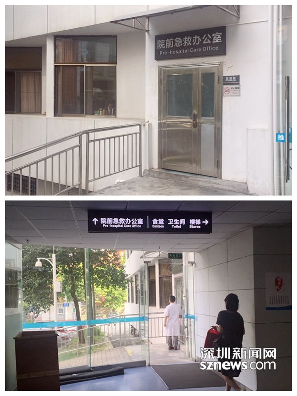 上图为蛇口人民医院2号楼院前急救办公室门口