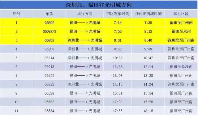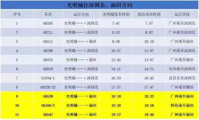 深圳北、福田方向已开通高铁列车,全天22趟;