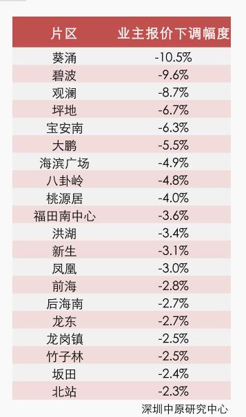 附深圳各区业主报价跌幅榜