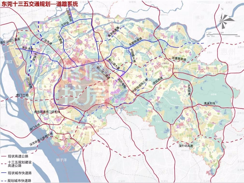 先来看一下东莞的道路系统规划,东莞目前的现有公路密度已经是全国前列,已初步形成“高快速路为龙头,国省道为骨架,34个镇区都通一级公路”的公路网络体系。