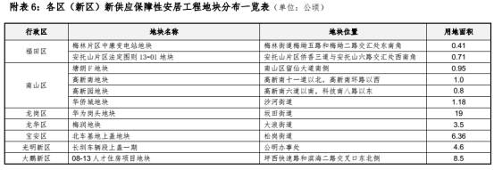 2016 年多渠道保障商品住房用地,供应商品住房用地 63.9 万平(其中,新供应 14.6 万平,城市更新供应 49.3 万平,通过征地返还解决历史遗留问题新供应建设用地 19.6 万平);供应保障性安居工程用地 66.8 万平(其中,新供应保障性住房用地 25.1 万平,落实城市更新项目折合保障性住房用地面积 20.8 万平,产业配套住房用地 20.9 万平)。