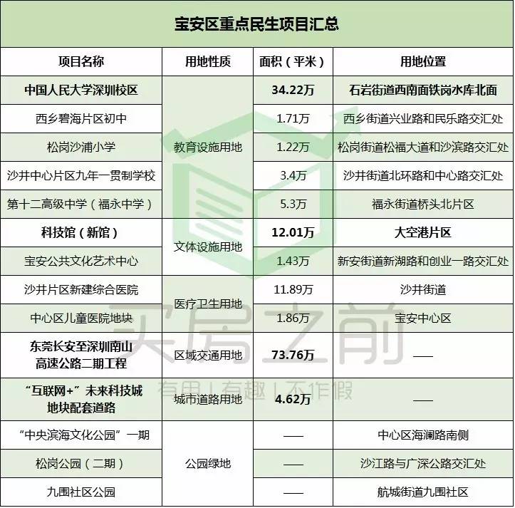 作为西部的重点区域,宝安今年的民生项目也不少,更多集中在沙井、福永、松岗等相对边缘的地区,其中沙井将新增一所九年一贯制学校、综合医院。