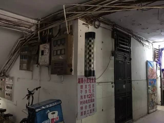 进入楼房内部,电线、电缆、宽带、电话线密如蛛网,隐患丛生。一位业主透露,宿舍区半年时间里失火6次,全部是因为线路问题,所幸并无人员伤亡。 而房子内部更是触目惊心,天花板脱落、钢筋裸露,有住户甚至用透明胶带粘住破损处,以防石块脱落伤人。