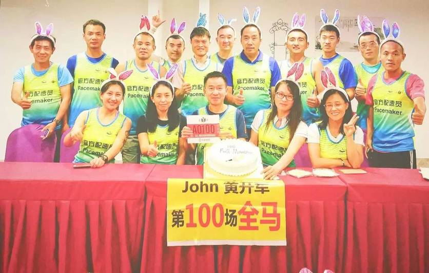 终于,在2017年6月11日山东的荣成滨海国际马拉松上,黄开军以官方配速员的身份,完成了自己的第100场全马赛事!组委会还贴心地给他安排了A0100的参赛号码布。