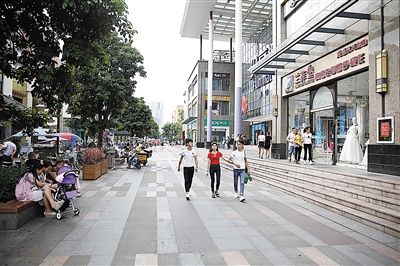 现场走访:昨日,记者来到桂花社区看到,道路两边的树木为行人遮住了高温和暑气,整体环境干净整洁。