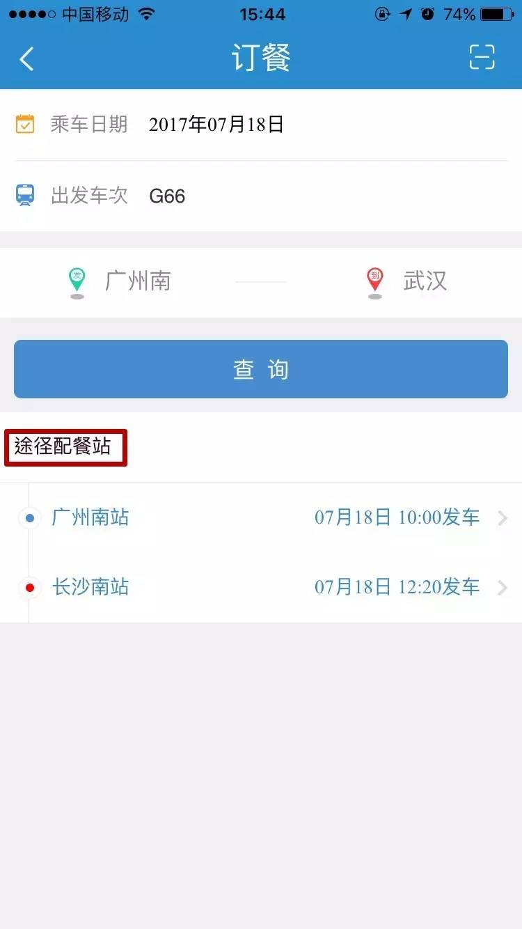 2.进入订餐页面,乘车日期和出访车次将会自动匹配你的订票信息。请注意,一定要先订票才能订餐哟~下面有途经的订餐站可以自主选择。