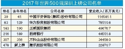 美国《财富》发布新一期世界500强排行榜,深圳有6家。