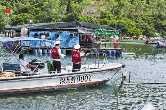 昨日下午,大鹏新区生态环境综合执法局渔政大队、新区安监局、新区经服局、公安和市监部门及南澳办事处在南澳畲吓湾开展针对海上渔排餐厅的联合执法行动(上图)。