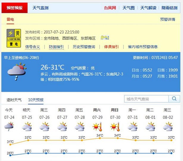 气象台预计,23日夜间风力进一步减弱,仍有间歇性降雨,有时雨势较大;24日降雨明显减弱,转多云有阵雨或雷阵雨天气,26-32℃;25-30日多云到晴天,间中有阵雨或雷雨,天气渐趋炎热至酷热。