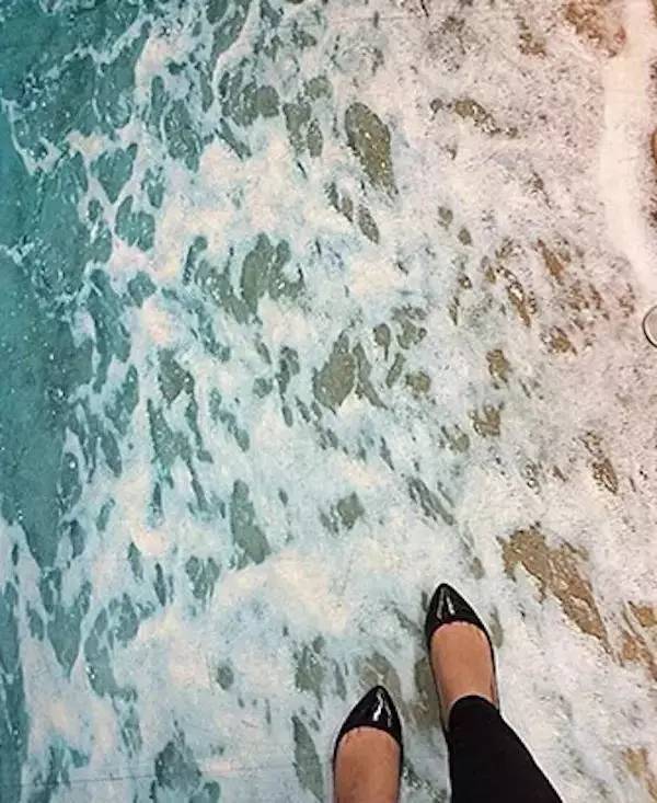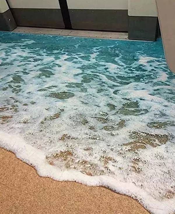 和台北「游泳池」地铁有一拼的,是雅典地铁的海浪沙滩主题:海浪、沙滩、脚印……