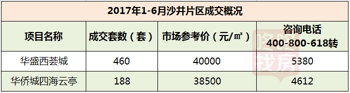 目前在售新盘不多,但是上半年来成交套数不少,如沙井的新房代表华盛西荟城四期成交活跃,早批入市的成交均价接近4万/平,在片区内具备竞争力,目前中小区间段的户型已售罄,大户型在售突破4万/平。另一项目四海云亭成交亦是不错,成交均价有足够的吸引力。