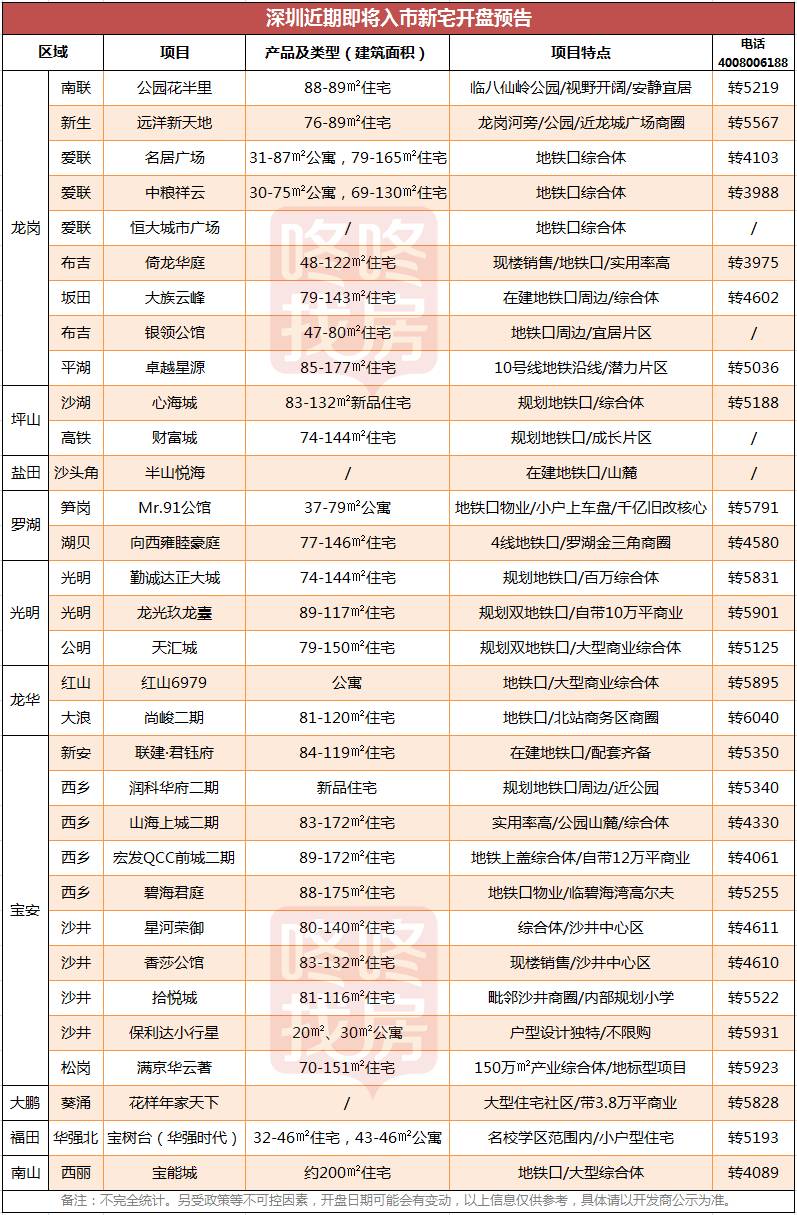 根据老牛统计(不完全统计,以开发商实际动态节点为准),全市大约近32个新住宅(含热门商务公寓)项目即将入市。从分布来看,龙岗及宝安依然占据大头,其中细分片区来看,西乡和沙井突出,将是下半年的置业主场。