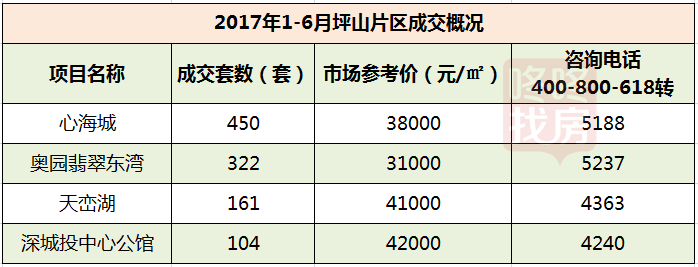 坪山片区是这两年来的热土,东进战略给了坪山施展的机遇,去年10月国务院批复同意坪山设立行政区后,更是稳扎稳打。去年突破3字头的新房项目心海城,今年上半成交450套,可谓后劲十足。个别项目甚至破了4万/平大关,又觉胆颤心惊。然而,既然有成交便有它的合理性。