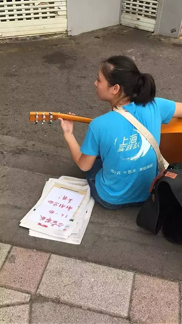 一大早,队员们每人要卖掉30份报纸。7月18日早,王梦圆吉他弹唱吸引顾客前来。浙江师范大学行知学院供图