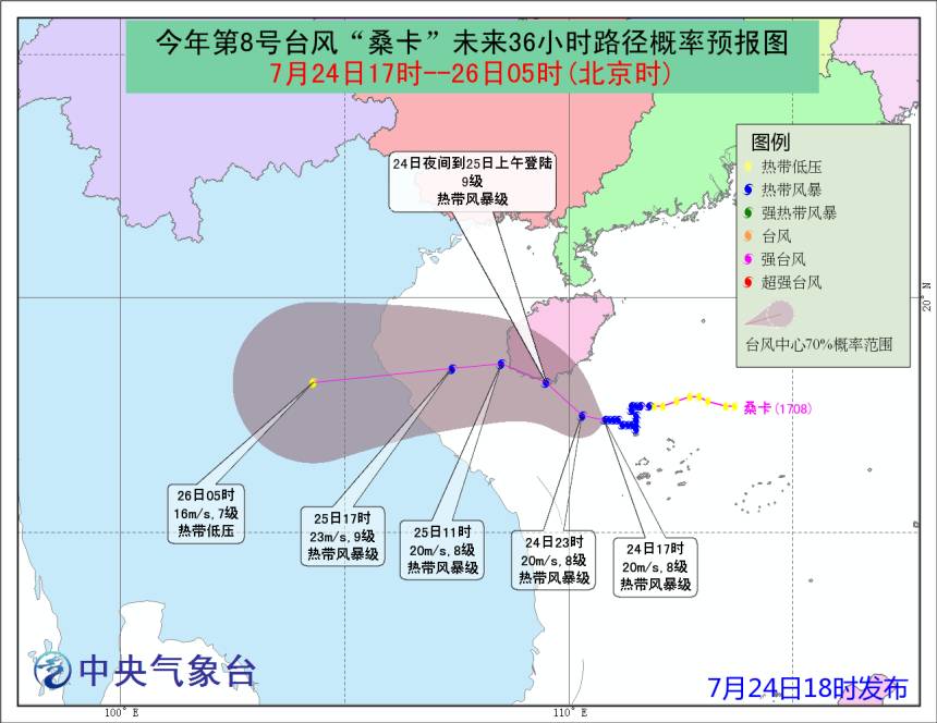 此外,今年第8号台风“桑卡”将于今天夜间到明天(25日)上午在海南三亚至陵水一带沿海登陆,在“桑卡”的影响下,海南岛东部和南部、广东南部、广西南部等地有大雨。