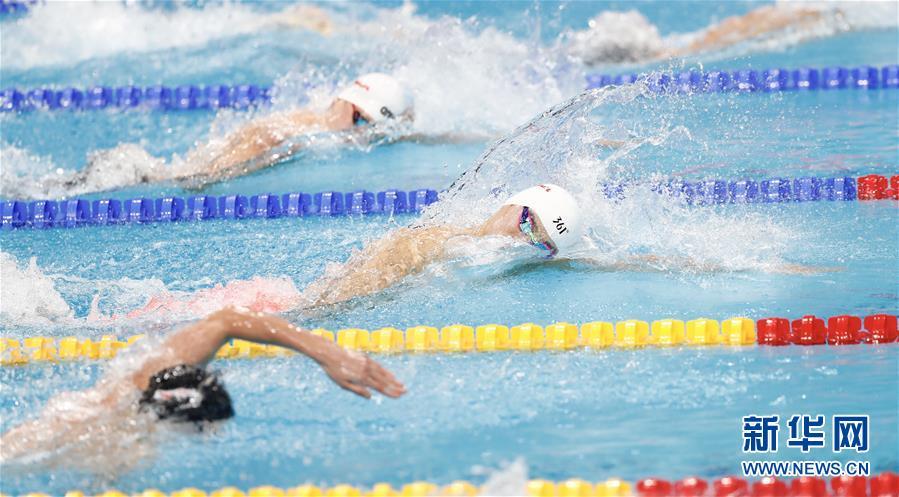 7月25日,孙杨在决赛中。当日,在匈牙利布达佩斯进行的第17届国际泳联游泳世锦赛游泳男子200米自由泳决赛中,中国选手孙杨以1分44秒39的成绩夺冠。新华社记者丁旭 摄