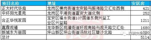 经预测,2017年下半年,还将有5个安居房项目,面向全市户籍家庭、轮候配售申请。这5个项目分别位于龙岗区横岗片区的,正大时代华庭(421套)、龙岗区平湖片区的,中环阳光星苑(252套)、宝安区福永片区的,合正华悦家园(1211套)、龙华区观澜片区的,观禧花园(1680套)、坪山区的,新城东方丽园(1550套)共计5114套房源。