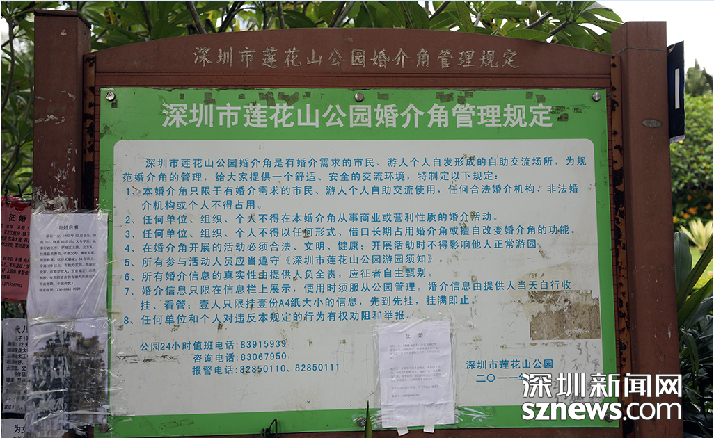 莲花山公园婚介角管理公示,落款显示2011点5月