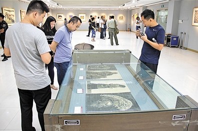 市民在观湖美术馆观看“行·迹”当代版画名家作品展。