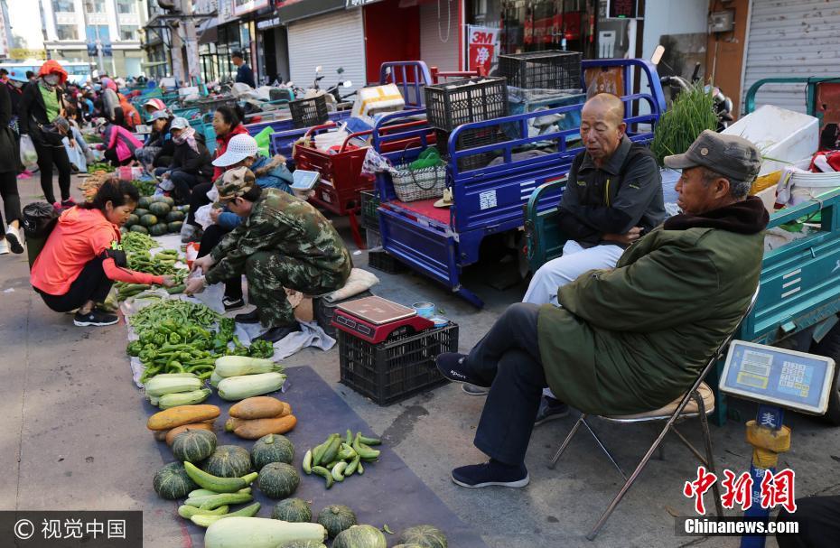 实拍黑龙江黑河三伏天 菜农清早出摊穿羽绒服