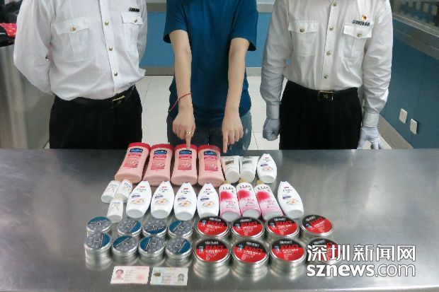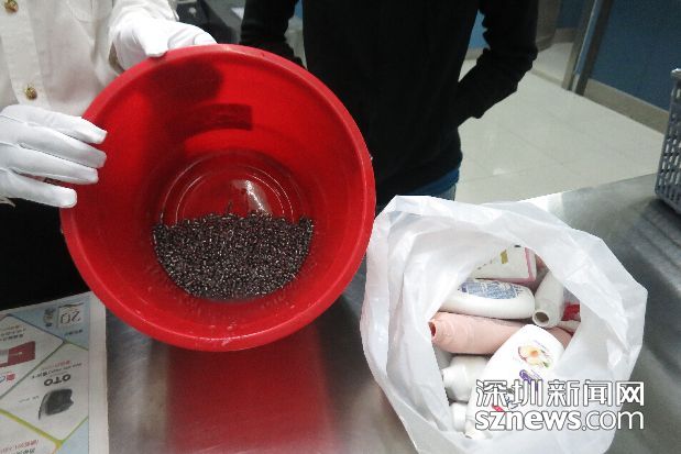 铅弹置于沐浴露瓶中经机检似“珍珠奶茶”