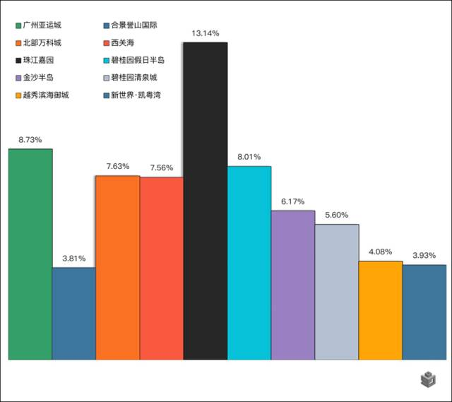 如图12所示,广州最受90后关注的楼盘是位于萝岗区的珠江嘉园,其次是广州亚运城和碧桂园假日半岛。